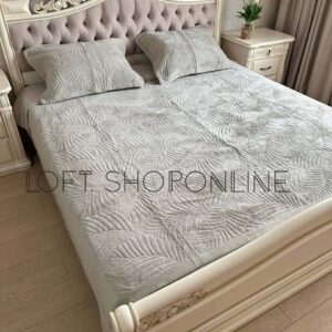 Велюрове покривало “Листок-шиншила” 220*240 з наволочками 50*70